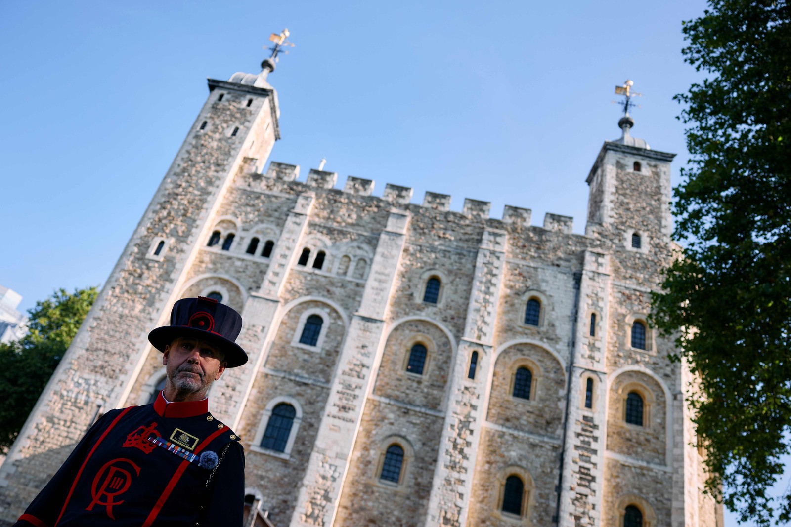 A White Tower,estrutura central da antiga fortaleza,foi construída em 1078 pelo rei Guilherme I,e hoje é um museu que guarda as joias da coroa britânica — Foto: Benjamin Cremel / AFP