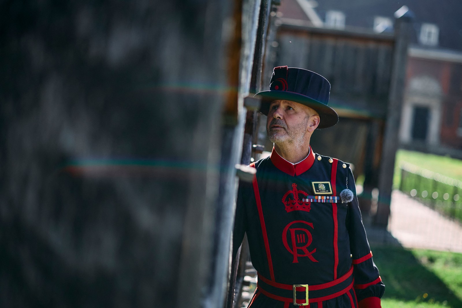 Depois de servir em missões da marinha britânica em locais como Afeganistão e Ártico,Barney Chandler ingressou no regimento Yeoman Warder,responsável por guardar a Torre de Londres — Foto: Benjamin Cremel / AFP