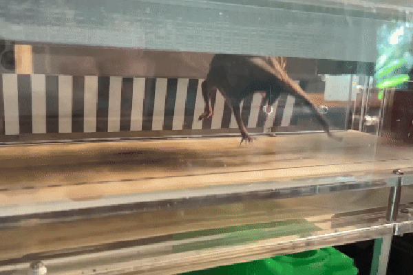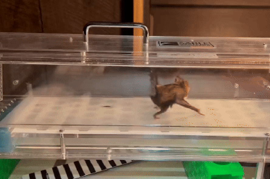 Após se alimentarem,os morcegos foram colocados em uma esteira em miniatura. Segundo o Dr. Welch,os morcegos habilidosos inicialmente usaram os polegares para se agarrar às fendas e evitar a esteira em movimento. “Eles são como nós”,ele disse,“se não querem correr na esteira,tentam se esquivar e ficam de lado.