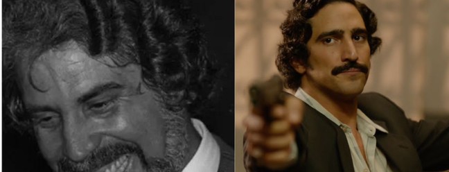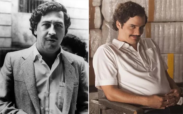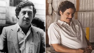 O traficante Pablo Escobar e sua versão interpretada por Wagner Moura na série "Narcos",da Netflix — Foto: Divulgação