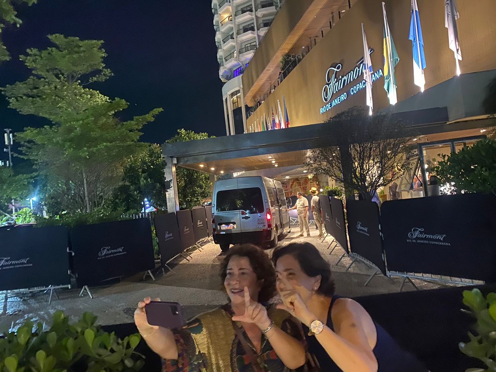 A expectativa de tirar uma foto com algum dos presidentes que está hospedado no Hotel Fairmont,em Copacabana,na Zona Sul do Rio,transformou os estabelecimentos no entorno do luxuoso edifício em um dos “points” das delegações que vieram para o G20. Curiosos e turistas vem se amontoando entre as grades que cercam o prédio na tentativa de ver os chefes de Estados.