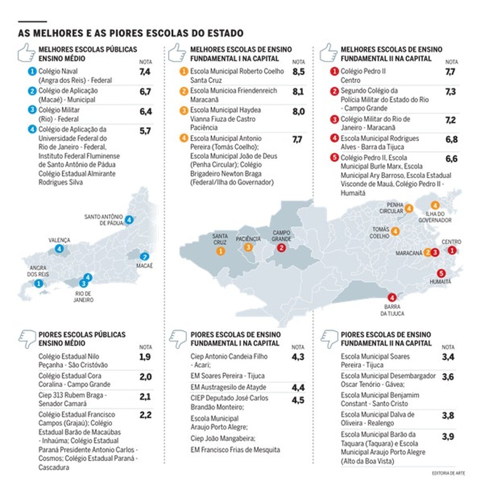 Um erro apontado por grande parte dos especialistas ouvidos pelo GLOBO é a inexistência,na rede estadual,de sistemas de avaliação. Diretora do Instituto João e Maria Backheuser (IJMB) e especialista em política educacional,Teca Pontual cita a extinção do Sistema de Avaliação da Educação do Estado do Rio (Saerj) em 2017: