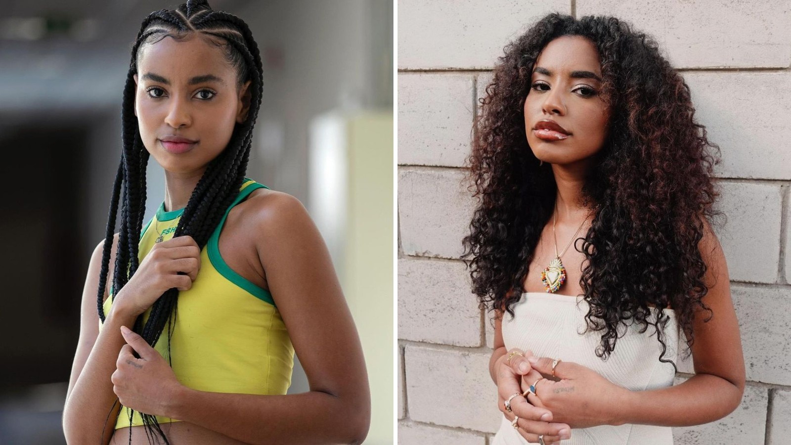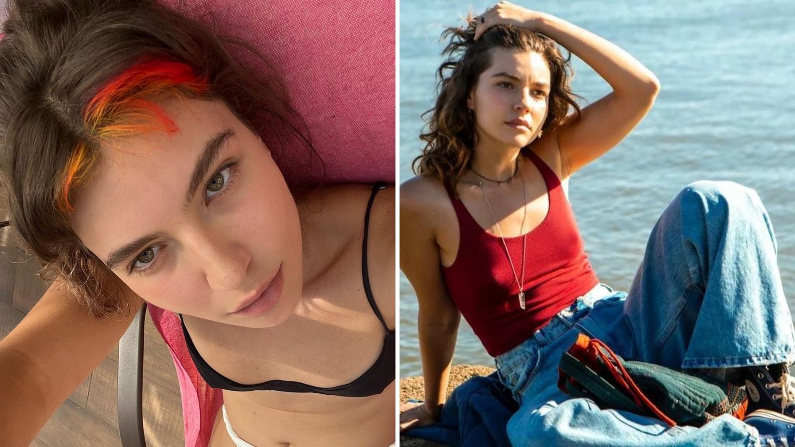 Alanis Guillen mudou o cabelo para interpretar Michele em "Mania de você" — Foto: Ana Lopes Gomes/TV Globo e Reprodução/Instagram