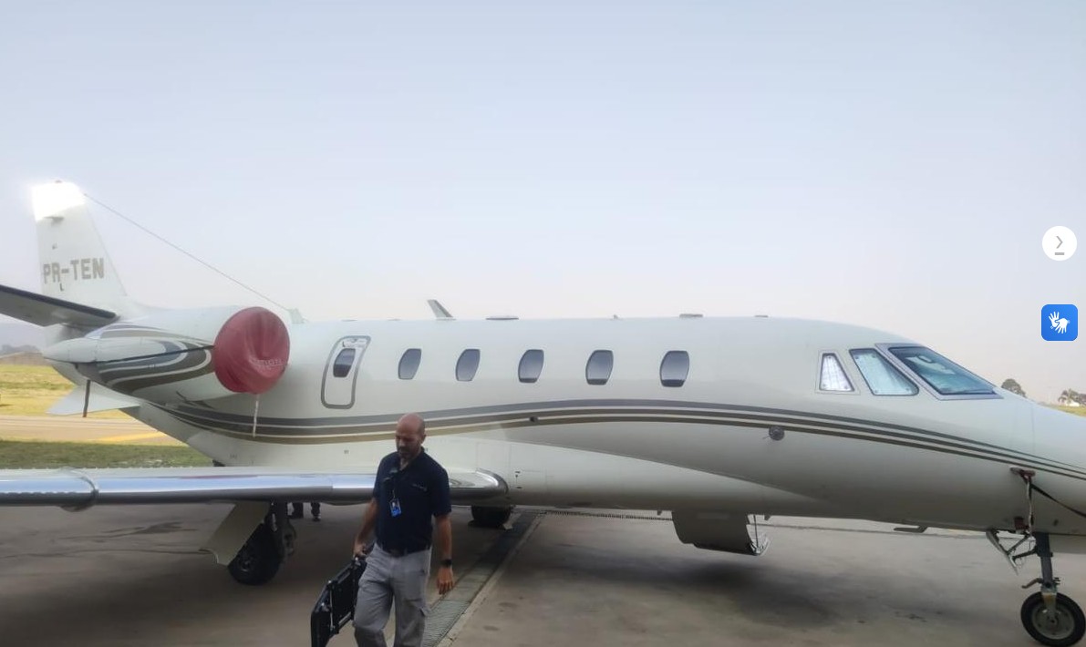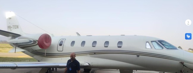 Agentes com aeronave alvo de sequestro durante Operação Integration — Foto: Divulgação/PCPE