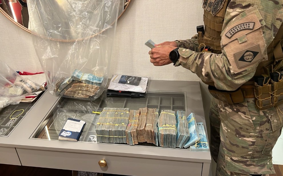 Agente conta notas de dinheiro durante Operação Integration — Foto: Divulgação/PCPE