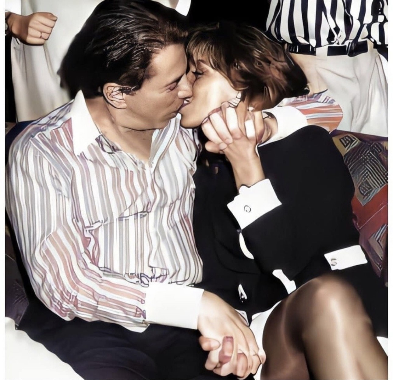 Silvio Santos aos beijos com a segunda esposa,Íris Abravanel. A primeira mulher,Cidinha,faleceu aos 39 anos com câncer. Dessa relação teve duas filhas,Cintia Abravanel e Silvia Abravanel,sendo a última adotada pelo casal. Ele teve mais quatro filhas,Rebeca e Renata — Foto: Reprodução Internet