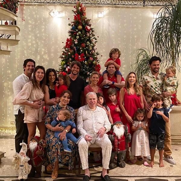 De pijama,Silvio Santos gostava de passar os Natais rodeado pelos netos,as filhas,os genros e a esposa — Foto: Reprodução Internet