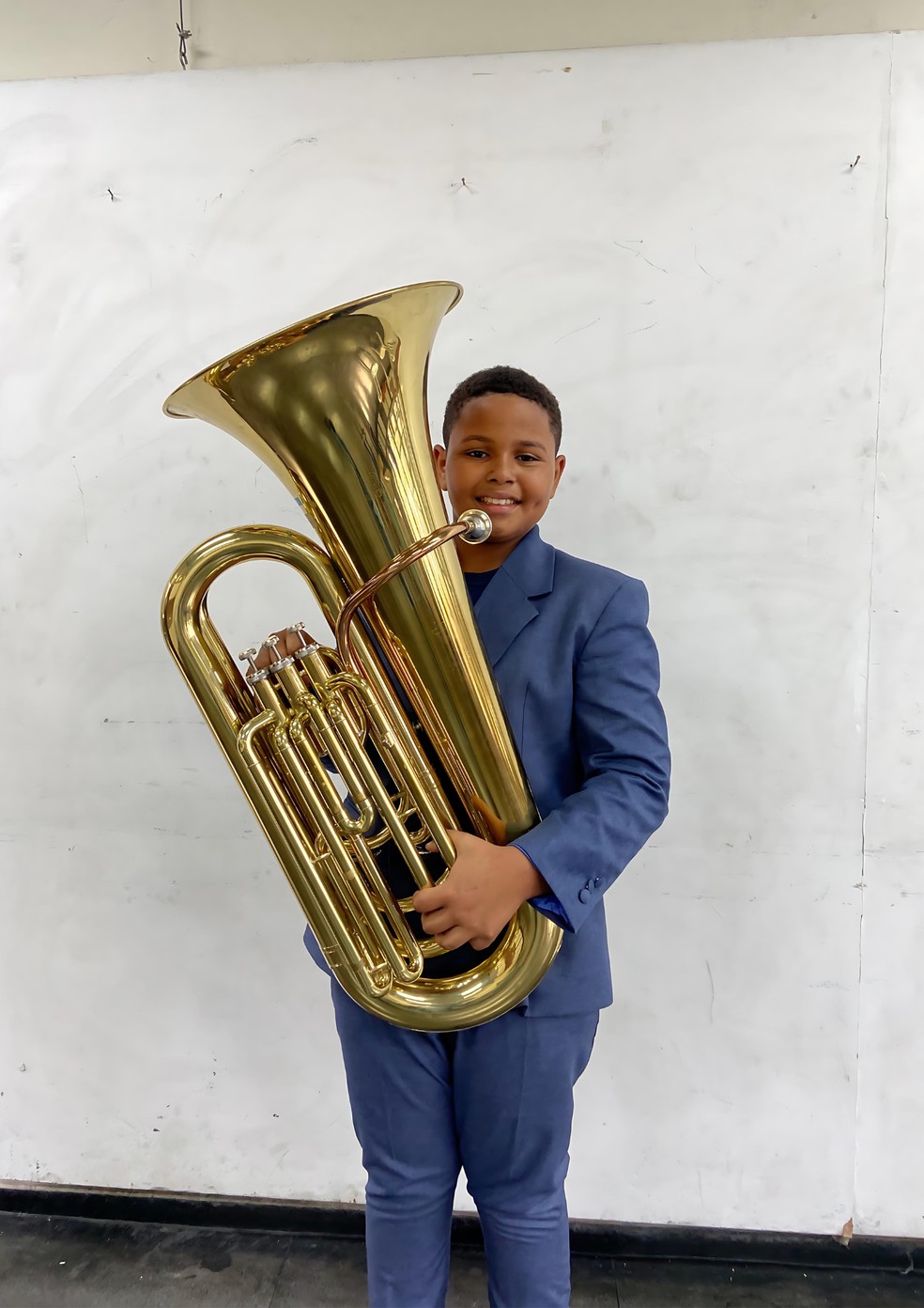 Kael aprendeu a tocar tuba na Escola de Música e Cidadania — Foto: Divulgação