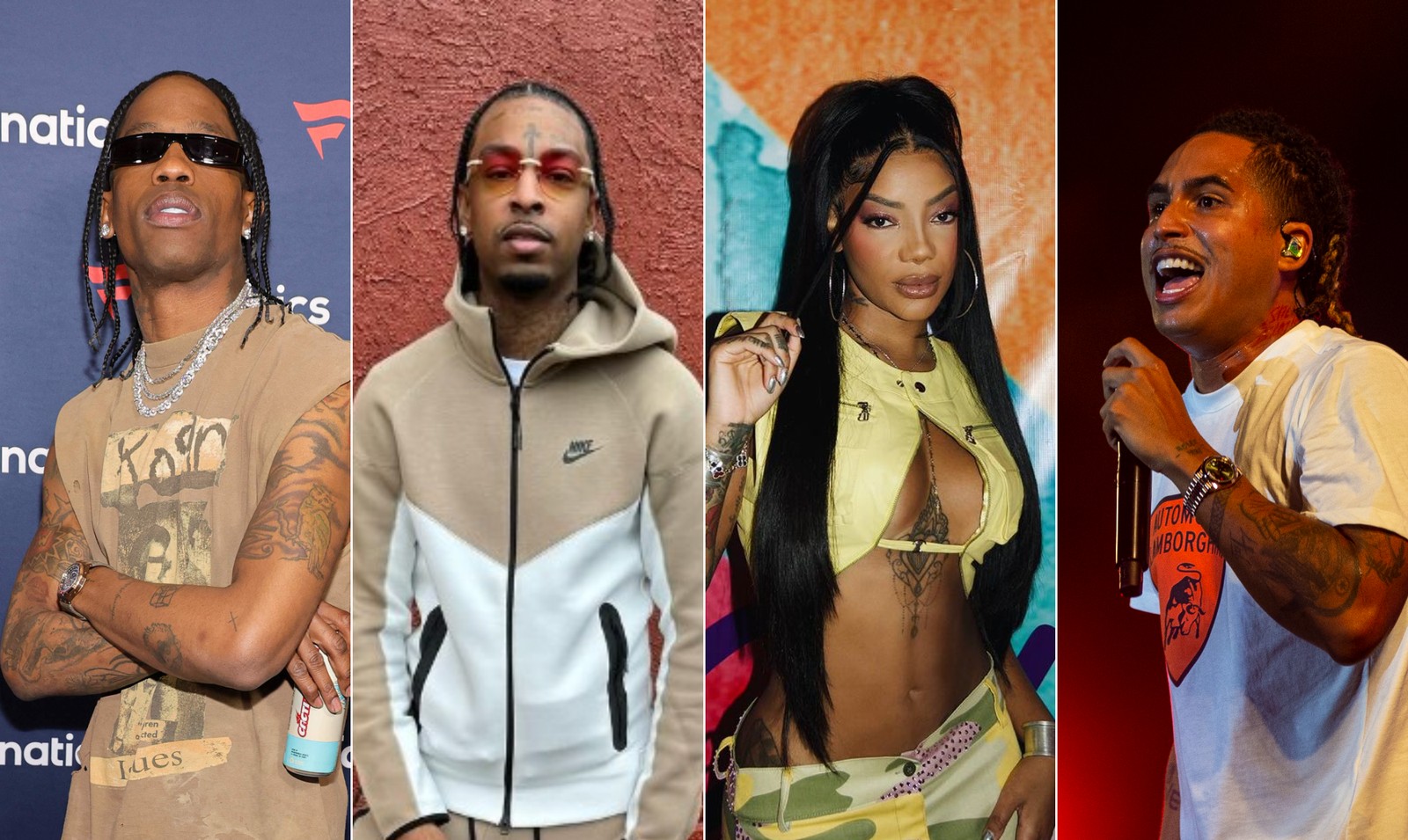 Palco Mundo (13/9): Travis Scott,21 Savage,Ludmilla e Matuê. Fotos de AFP,divulgação e Agência O Globo.