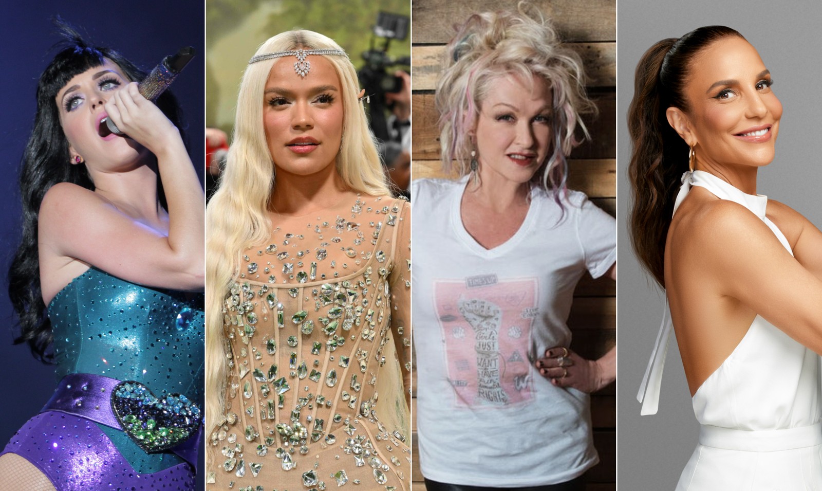 Palco Mundo (20/9): Kate Perry,Karol G,Cyndi Lauper e Ivete Sangalo. Fotos de divulgação e Agência O Globo.