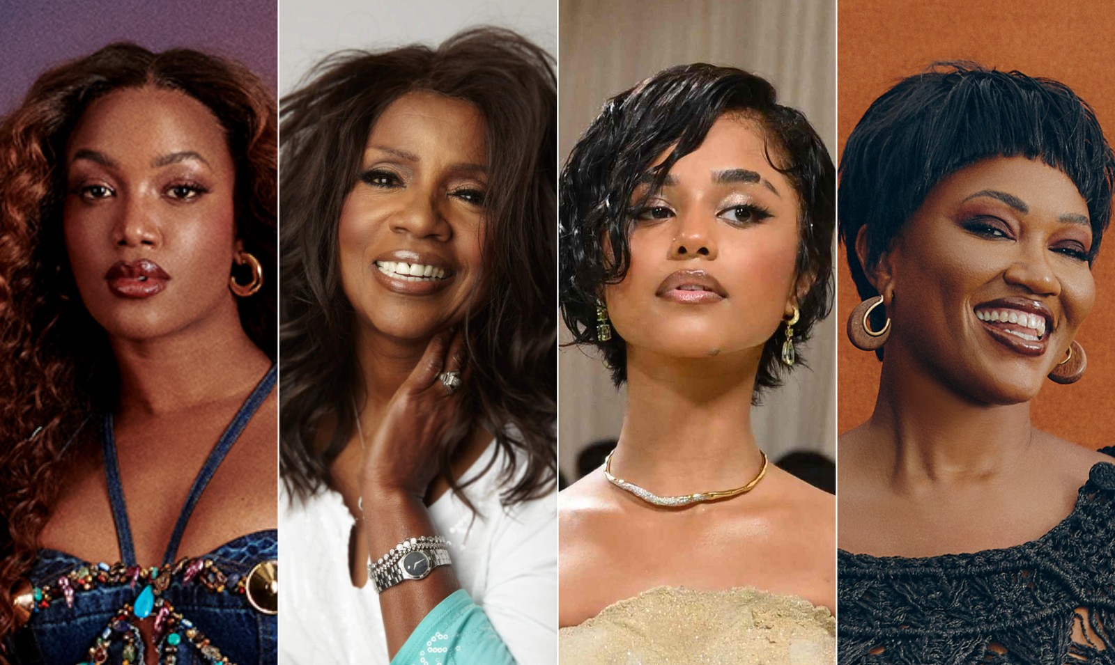 Palco Sunset (20/9): Iza,Gloria Gaynor,Tyla e Luedji Luna — Foto: Fotos de divulgação,AFP e Agência O Globo