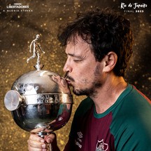 Publicidade Conmebol divulga fotos do elenco com a taça
