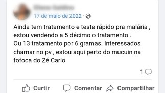 Garimpeiros usam grupo de Facebook para vender cloroquina — Foto: Reprodução/Facebook