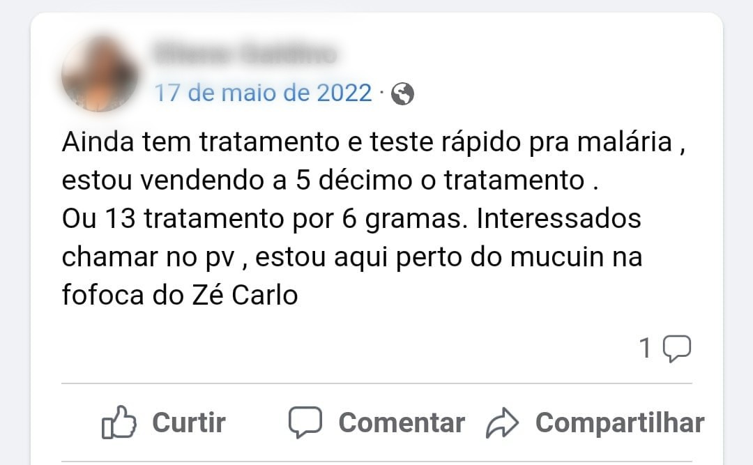 Garimpeiros trocam medicamento contra malária em gramas de ouro em grupo do Facebook — Foto: Reprodução/Facebook