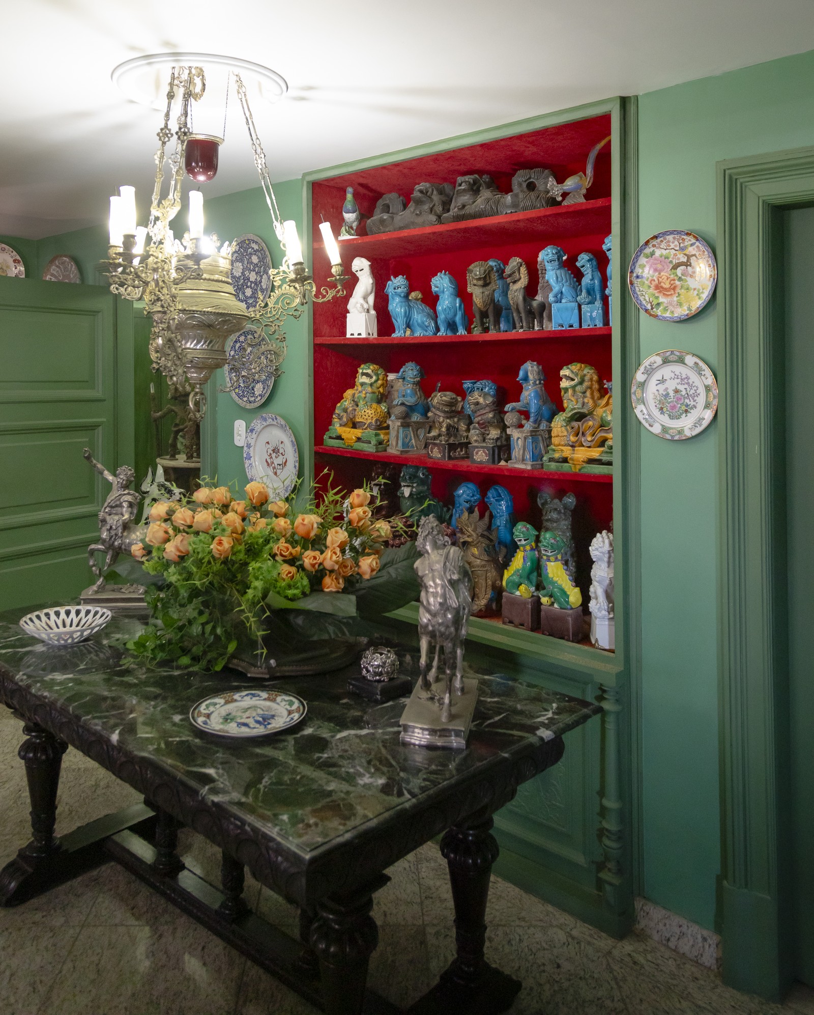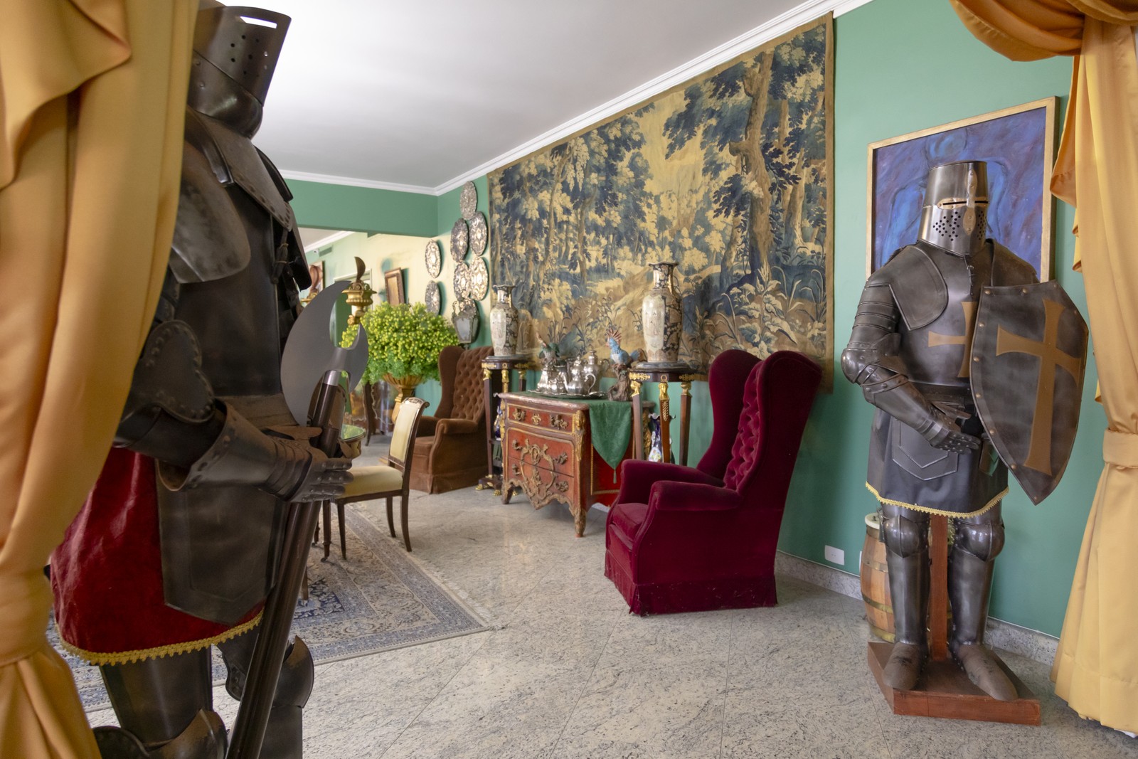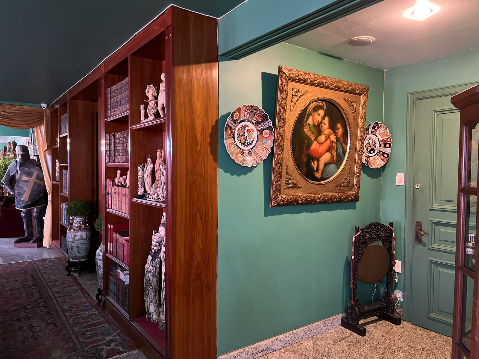 Uma das esculturas que está no hall de entrada é barroca. Ela data do século XVII,avaliada entre R$ 200 mil a R$ 250 mil,é uma imagem de Santana. Segundo o porta-voz da família e empresário João Chamarelli,a imagem é uma das favoritas de Regina:
