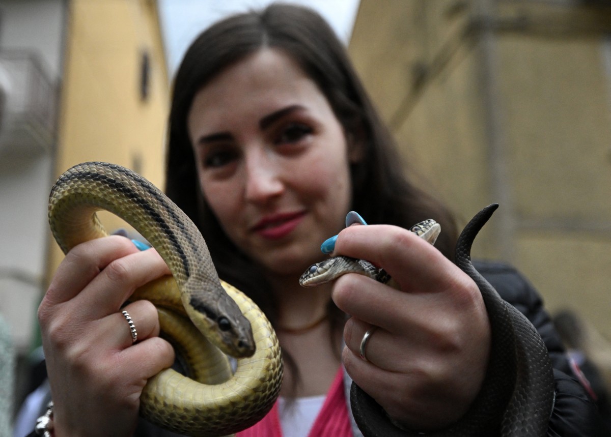 Religiosos usam serpentes em procissão tradicional,na Itália; veja fotos — Foto: TIZIANA FABI/AFP